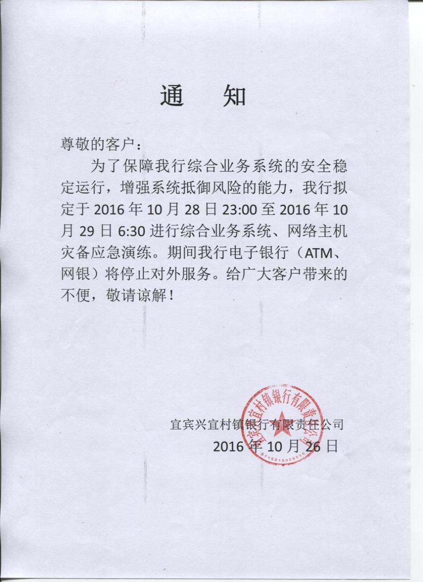 10月29日凌晨暫停對(duì)外服務(wù)通知