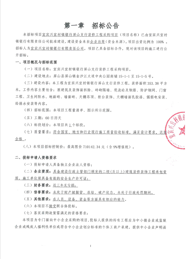 屏山支行裝修工程招標公告